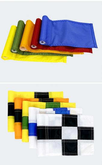 Descripción: Banderas de golf de alta calidad, fabricadas en nailon 420D impermeable y resistente, diseñadas para torneos profesionales y clubes. Incluyen un mástil robusto, un soporte y una funda numerada para una fácil identificación. Logotipos y colores personalizados disponibles para una imagen de marca única. Ideales para campos de golf, competiciones y eventos.