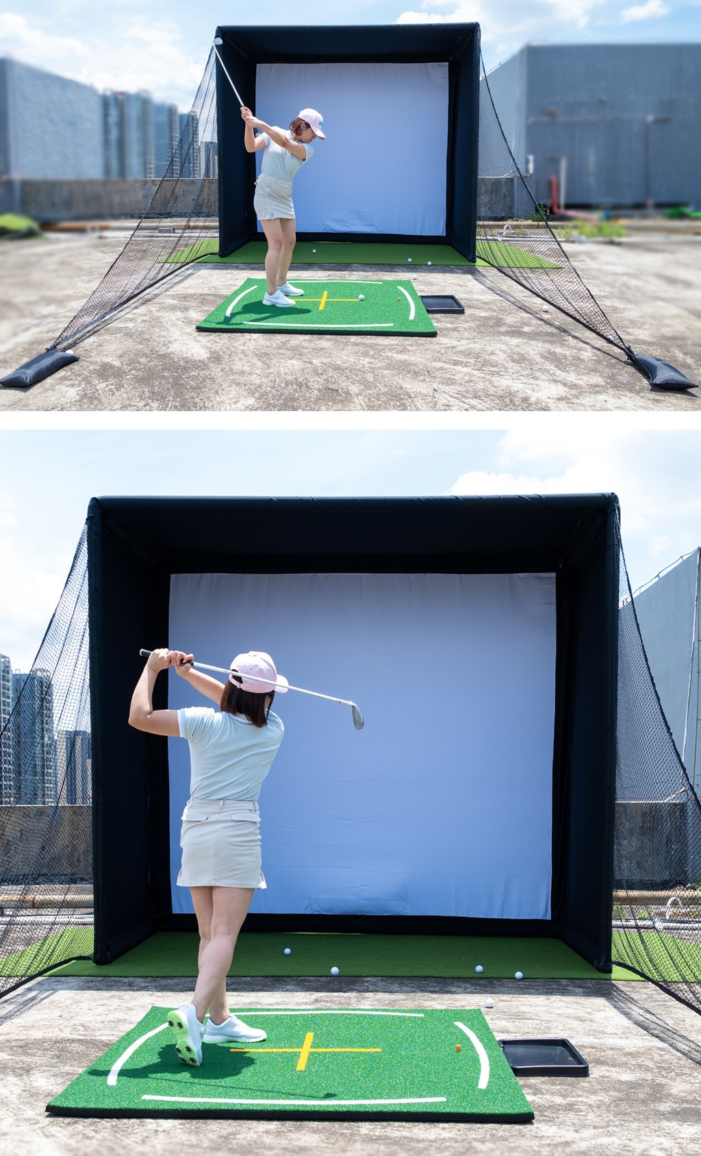 Casos de uso: Práctica en casa, estudios de golf, clubes deportivos, centros de entrenamiento.