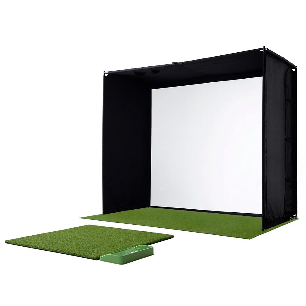 Pantalla para simulador de golf de interior, directamente de fábrica, diseñada para una fácil instalación. Incluye jaula de práctica, red de impacto y superficie de proyección; ideal para uso doméstico o comercial. Duradera, de alta calidad y asequible.