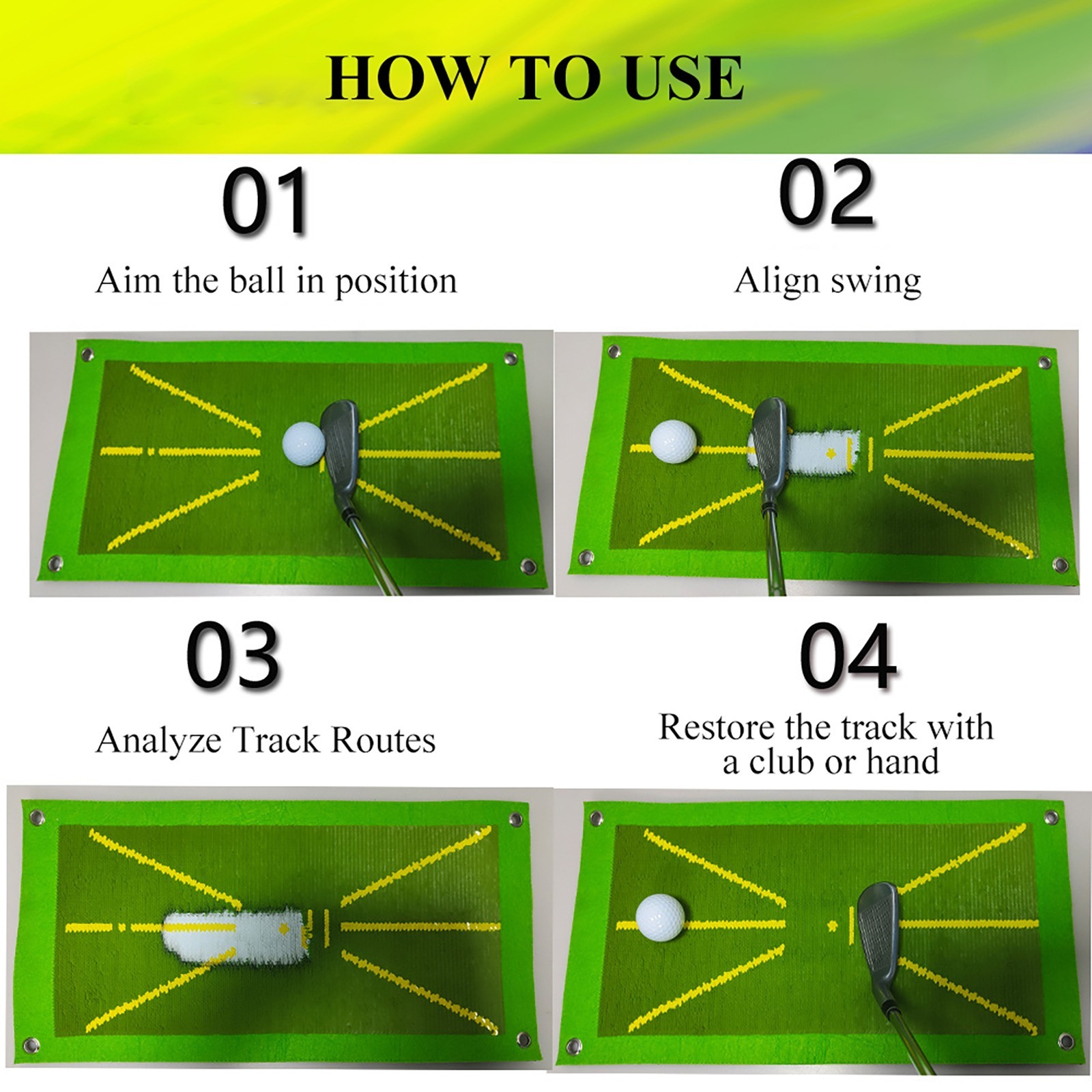 Mejora tu swing con esta alfombrilla de práctica que muestra marcas visuales instantáneas de la bola, ayudando a los golfistas a mejorar la precisión y la dirección sin esfuerzo.