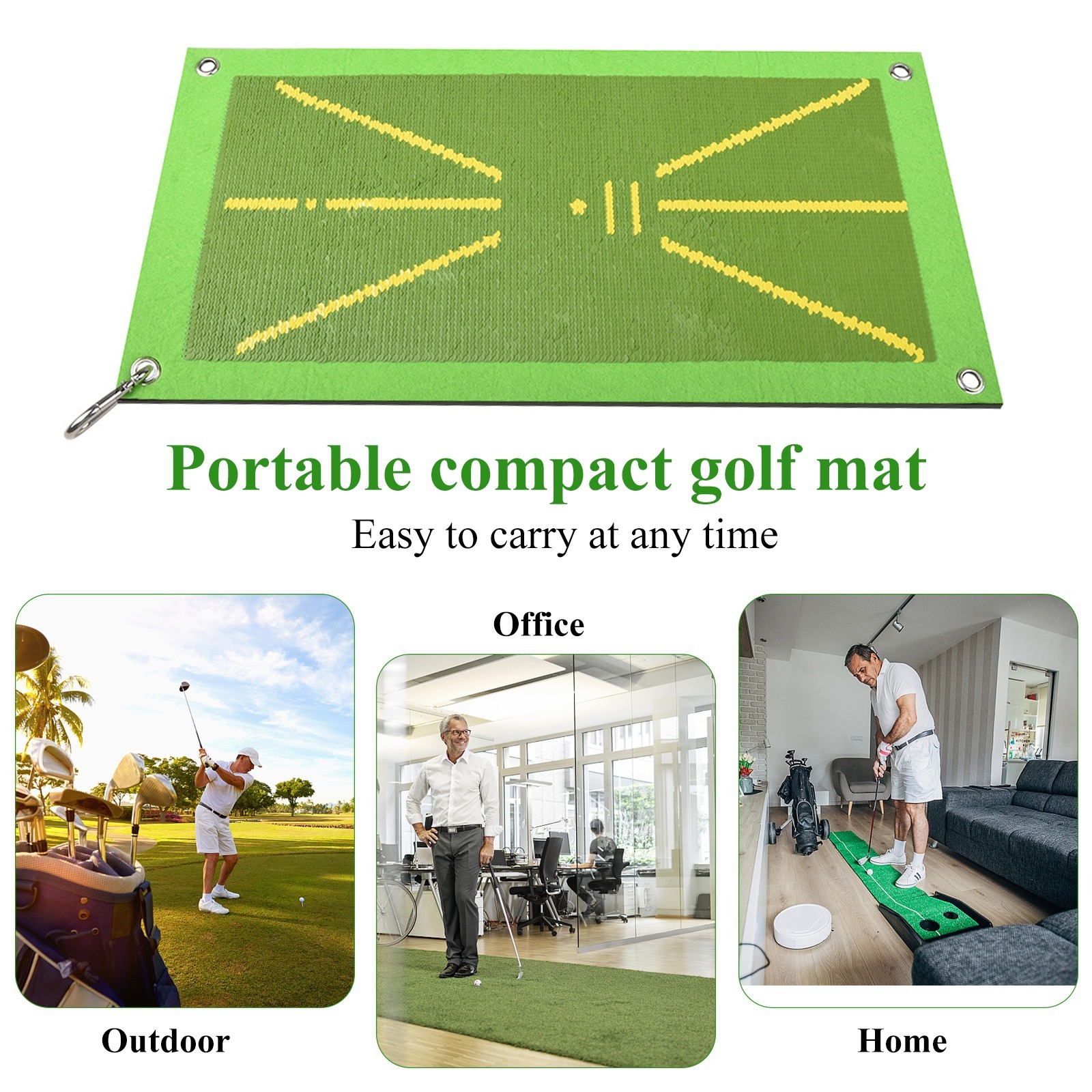 greenLa alfombrilla de práctica de swing de golf está diseñada tanto para principiantes como para golfistas experimentados que deseen perfeccionar su técnica. Su superficie de alta calidad muestra claramente las marcas del impacto de la bola, lo que permite un análisis inmediato de la dirección del golpe y la calidad del impacto. La base resistente y antideslizante garantiza la estabilidad durante el uso, mientras que su diseño portátil la hace ideal para practicar en interiores o exteriores. Perfecta para entrenar solo o en sesiones con un entrenador, esta alfombrilla ayuda a los usuarios a desarrollar swings consistentes y a corregir errores en tiempo real.