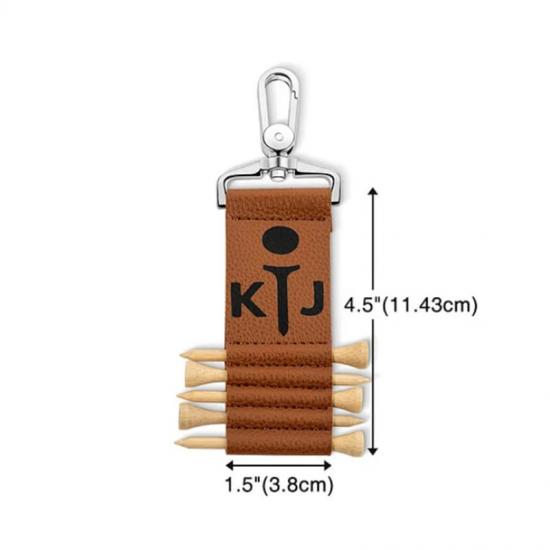 Este porta tees de golf de cuero presenta un diseño compacto con un cordón para facilitar su transporte. Perfecto para organizar los tees durante las partidas de golf al aire libre.