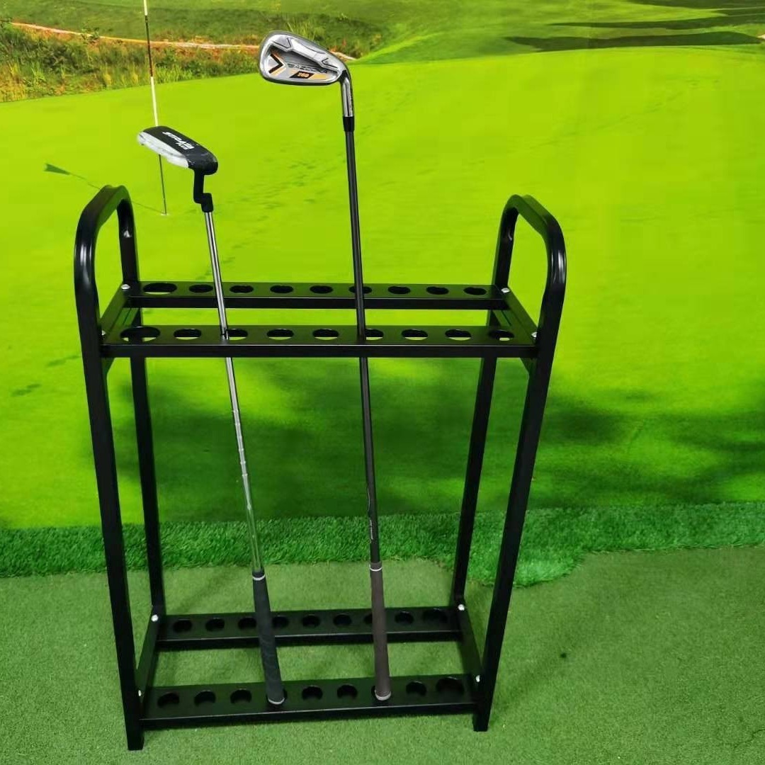 Este robusto soporte para palos de golf de 18 hoyos cuenta con una estructura de acero reforzado y un elegante acabado de pintura horneada. Diseñado para un montaje rápido y una gran durabilidad, mantiene los palos seguros y perfectamente organizados. ¡Ideal para el hogar o el campo de golf!